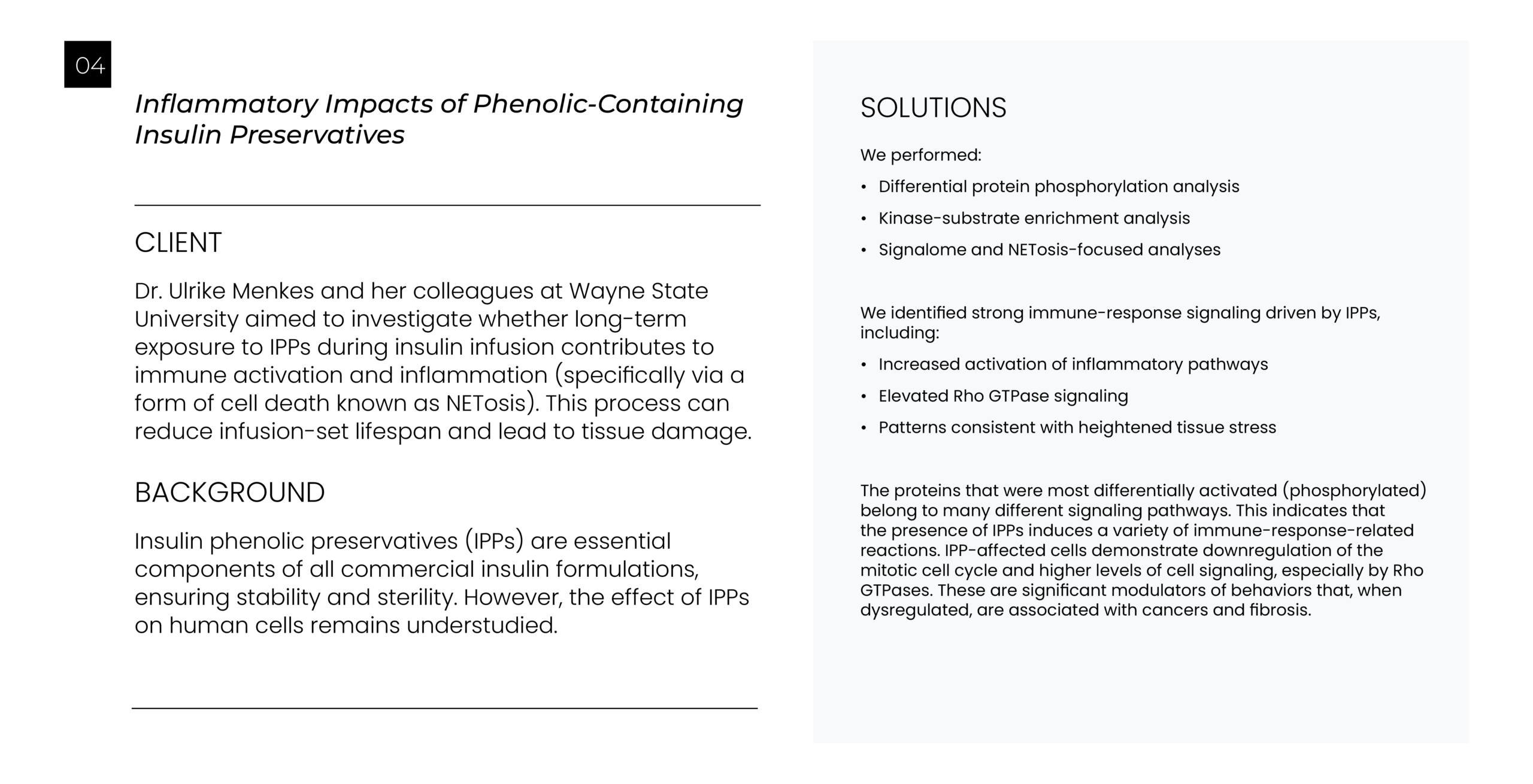 Our automated workflows are built to handle complex experimental designs, apply advanced statistical models, and help interpret your findings with pathway searches across a multitude of databases. You will get a clear description of methods, publication-ready figures, and straightforward result summaries to advance your research.